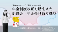 いろいろ選べるようになった公的年金、会社の年金。「でもどうしたらいいの?」という疑問と不安を多くの方が抱えています。安心感を高め、これからの人生を楽しむための実務知識を身に付けるための2時間です。